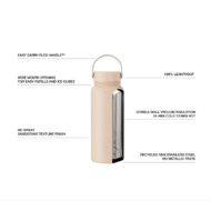Crafted from recycled, kitchen-grade stainless steel inside and out, this 500ml (16 oz) bottle delivers a clean, pure taste, without any metallic aftertaste.